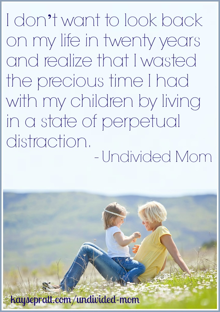 “I don’t want to look back on my life in twenty years and realize that I wasted the precious time I had with my children by living in a state of perpetual distraction.” #undividedmom http://bit.ly/1bEShyU