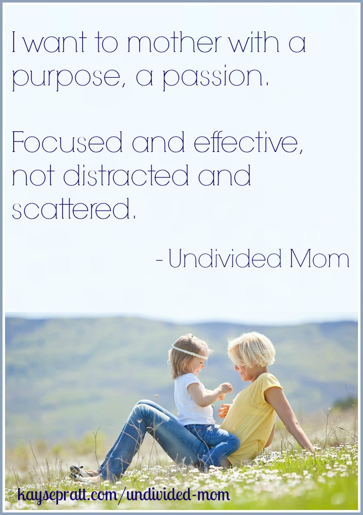 “I want to mother with a purpose & passion. Focused & effective, not distracted & scattered.”@kaysepratt#undividedmom http://bit.ly/1bEShyU <— Click to Tweet!