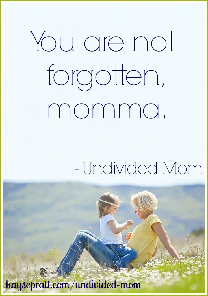 “You are not forgotten, momma.” @kaysepratt #undividedmom http://bit.ly/1bEShyU <— Click to Tweet!